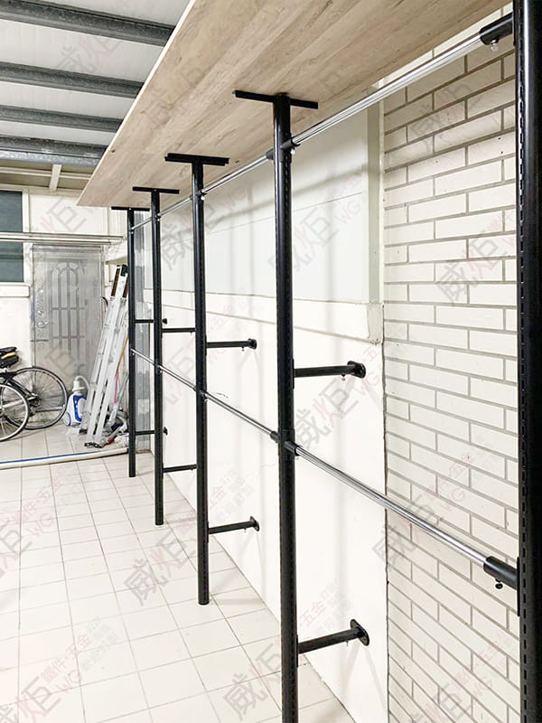 *圖中尺寸:w115*d45(層板)*h245cm(含腳墊)/主體架:30方管/層板架:20方管
